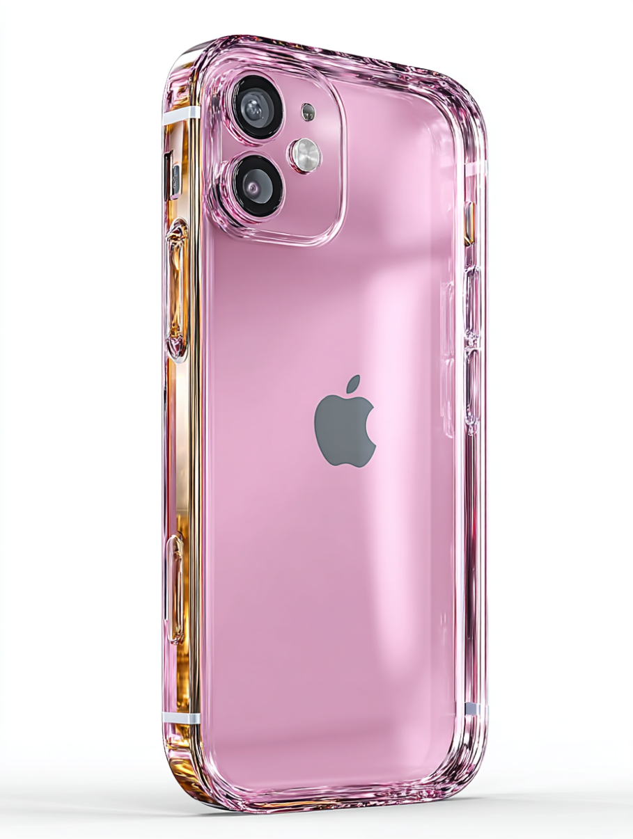 product photo of an Apple iPhone 12, smartphone in solid color [Bright pink], sleek glossy finish, studio lighting, isolated on pure white background, professional product photography, minimal shadows, ultra high resolution